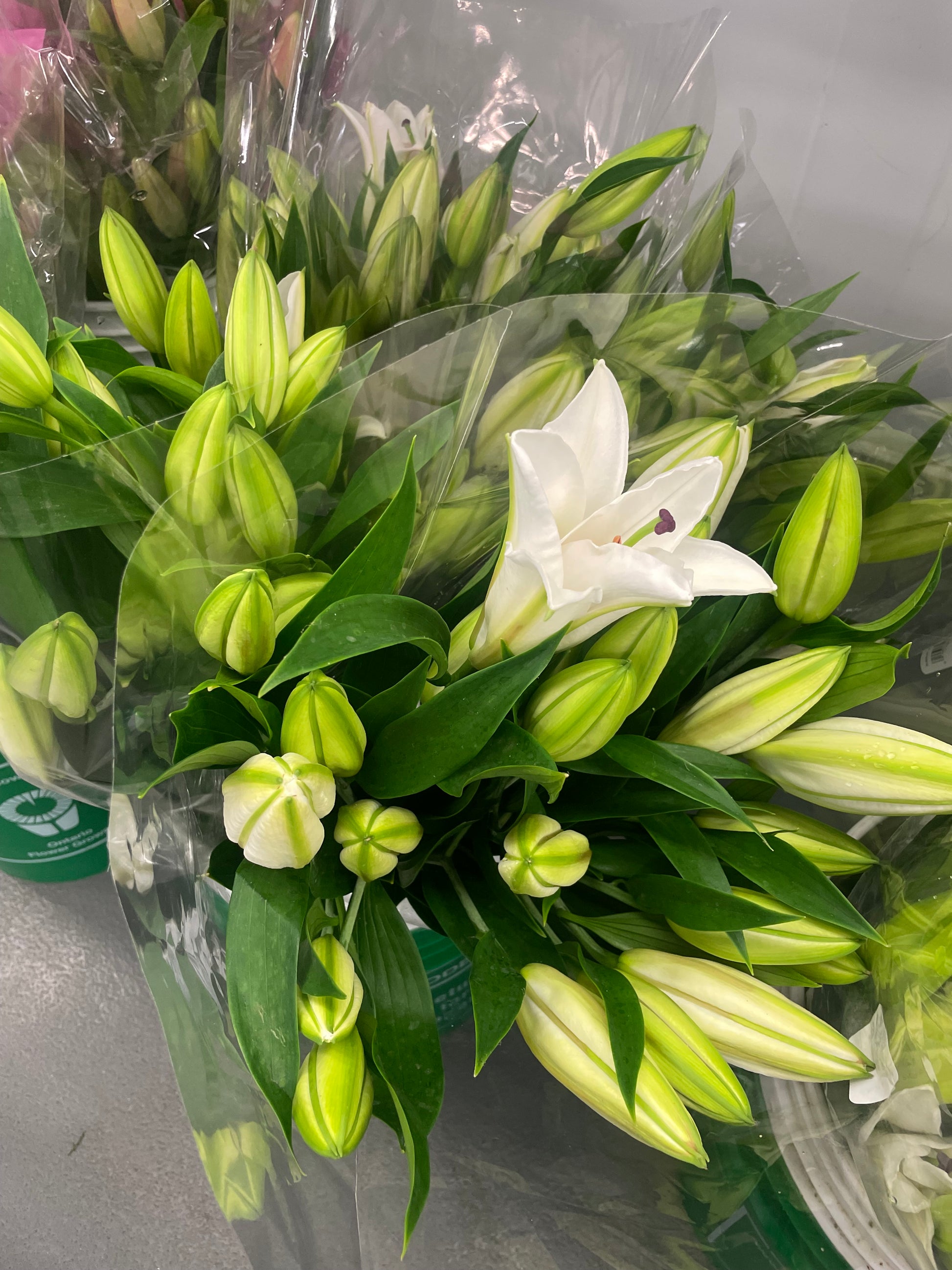 Fill your home with a fresh floral fragrance. This arrangement comes with 5 stunning large white Rubrum Lilies, with 3-4 blooms on each stem. With the proper care, this arrangement should last up to 2 weeks!