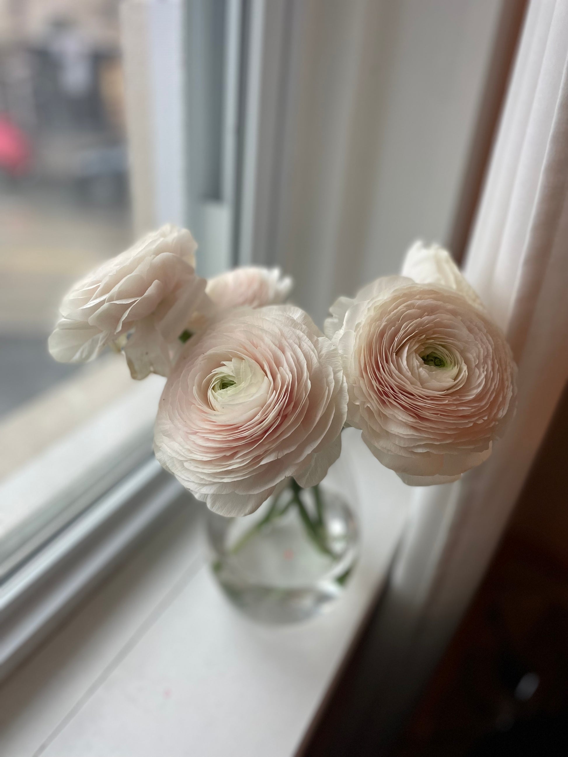 This elegant arrangement comes with 5 beautiful stems of fresh blush or white Ranunculus, arranged in a vase with greenery to compliment these premium stems. Ranunculus are both long lasting and elegant, making them the ideal gift for any flower enthusiast.